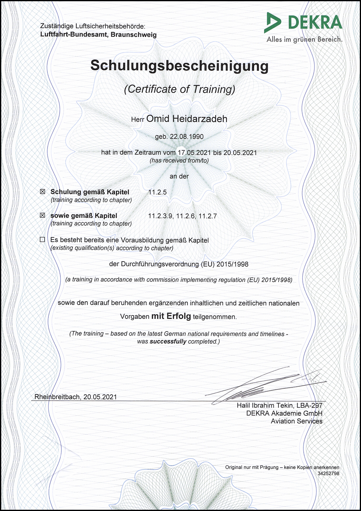 Die Sicherheit Ihrer Sendungen hat für uns oberste Priorität. Als zertifiziertes Transportunternehmen erfüllt die NavidEx GmbH alle relevanten Anforderungen gemäß der Durchführungsverordnung (EU) 2015/1998. Unsere Mitarbeitenden sind regelmäßig geschult und qualifiziert – unter anderem in folgenden Bereichen: