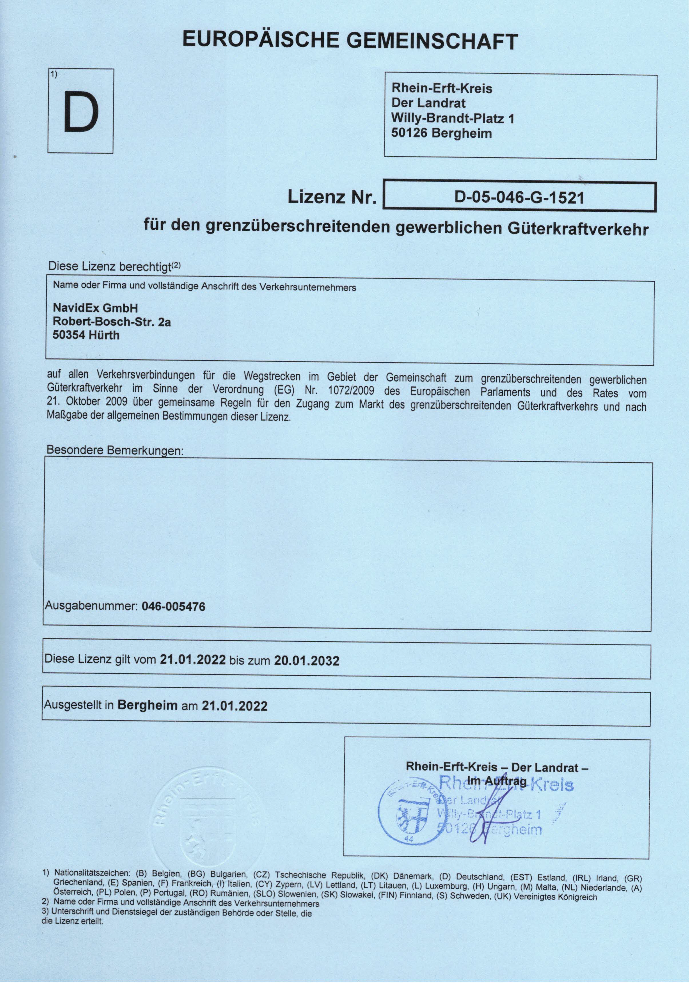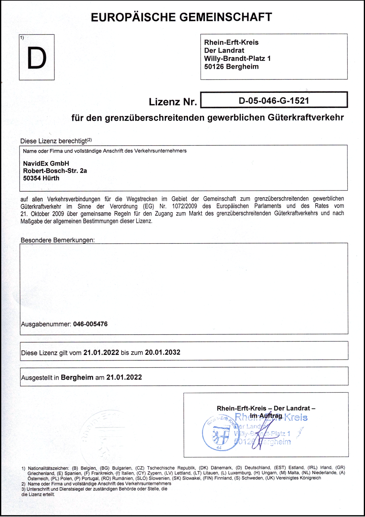 EU-Lizenz für den gewerblichen Güterkraftverkehr: Unsere offizielle Zulassung zur Durchführung europaweiter Transporte